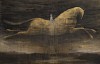 Bell’s earlier figures, characterised by entrapment (in the country, in the body), gave away to figures embodying the seeker – often accompanied by boats, horses, chariots. Images of lions, dogs, horses and angels recur. These are often intermediary figures between the physical world and a higher more spiritual realm. They are also aspects of herself – the powerful daemons that reside in all of us, which are often accompanied by solitary female figures, some full of assertive confidence, others more vulnerable and less sure of their agency.