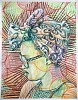 Gary Stephens’ portraits pay homage to the African traditions of hair-braiding, hats, headscarves and contemporary urban style. Many of his drawings focus on the iconic power of a subject’s hair or headdress rather than their specific facial features. Stephens portrays women in head scarves or men in hats to focus attention on the power of these everyday symbols of African life and to capture a sense of contemporary African style and flair for fashion. Stephens is drawn to patterns and visual rhythms, such as geometric repetitions, textile patterns, or botanical shapes. He is attracted to non-verbal, hypnotic visual experiences and often creates layers of patterns that offset and energize the image in the foreground.