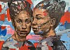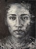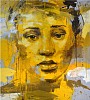 Smit’s paintings begin with abstract lines and swathes of colour that establish a foundation for the subsequently overlaid image of a face or bust – in most cases of anonymous models from the Cape Malay community. For Smit, the Cape Malay woman epitomises hybrid identity within a South African context and reflects the fragmentation of identity within our increasingly globalised world.